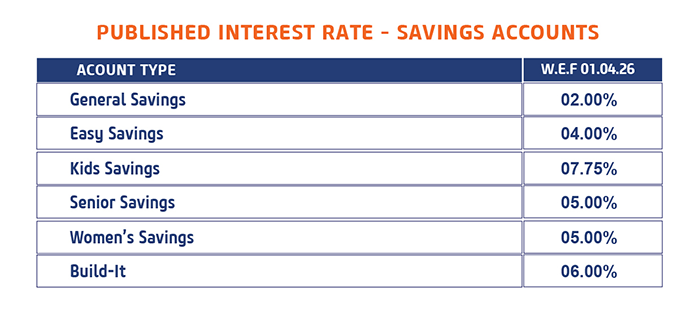 Attractive gifts and gift vouchers will be presented to the young savers with high rates of interest calculated on the daily balance of the account, which is credited to the account monthly.