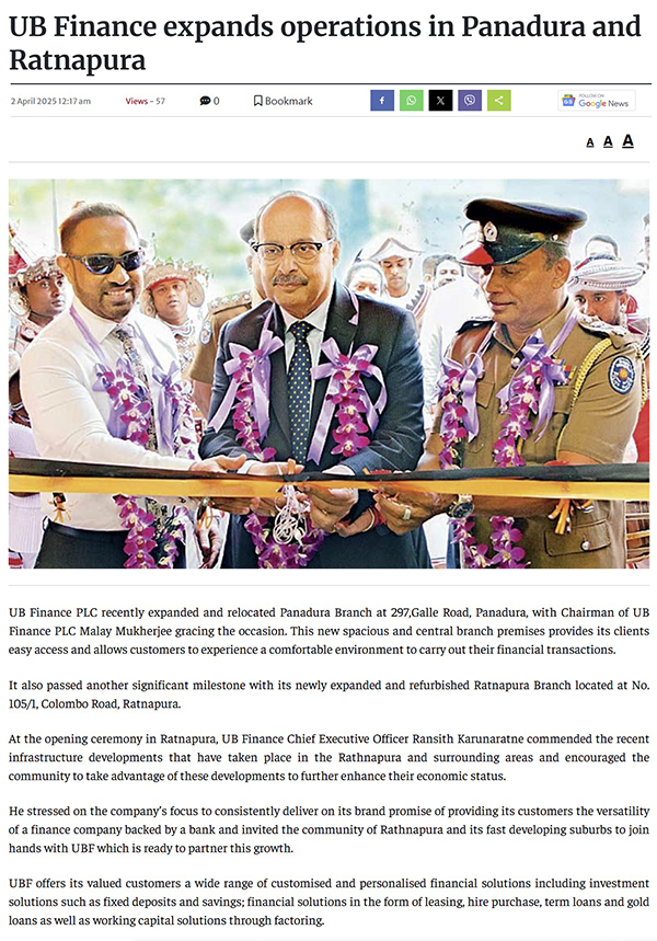 UB Finance expands operations in Panadura and Ratnapura | |||||||||